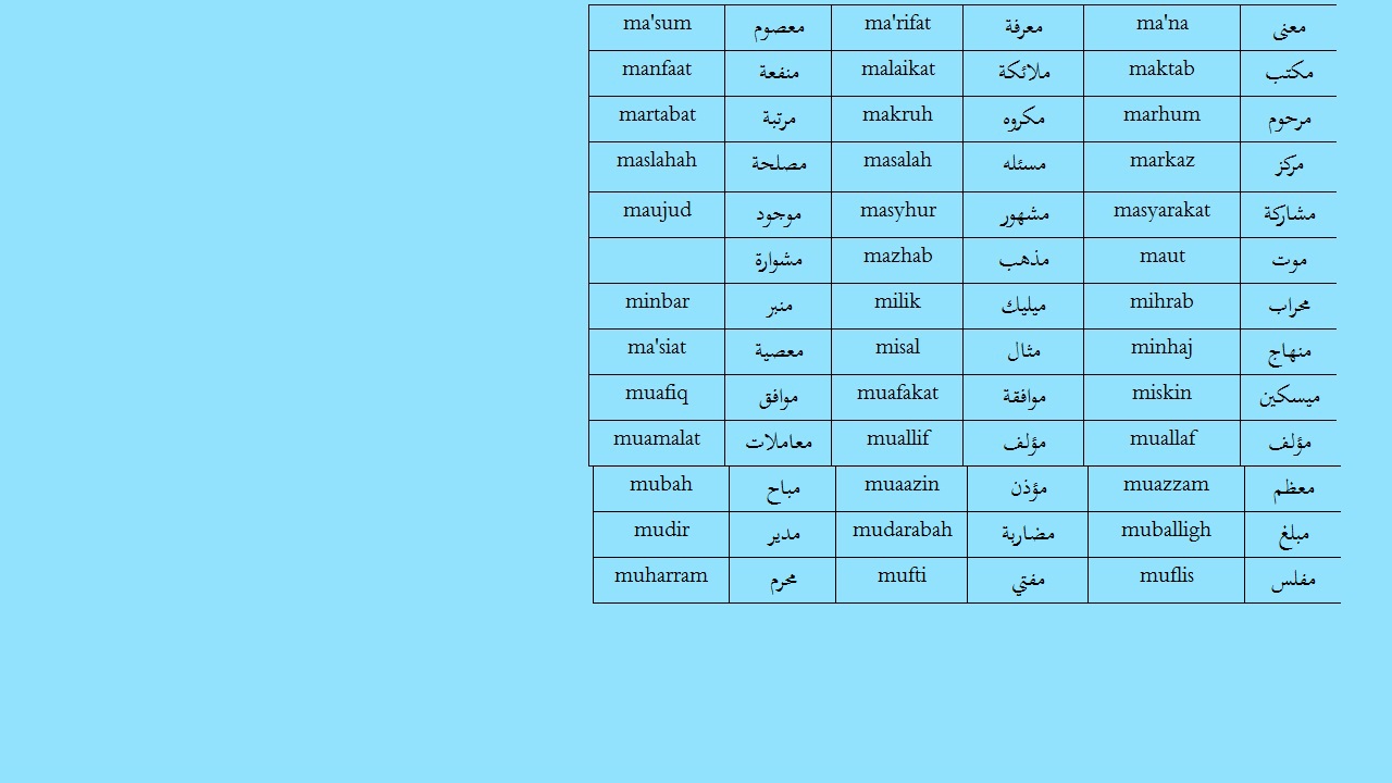 فركتأن عرب يغ تردافت دالم بهاس ملايو